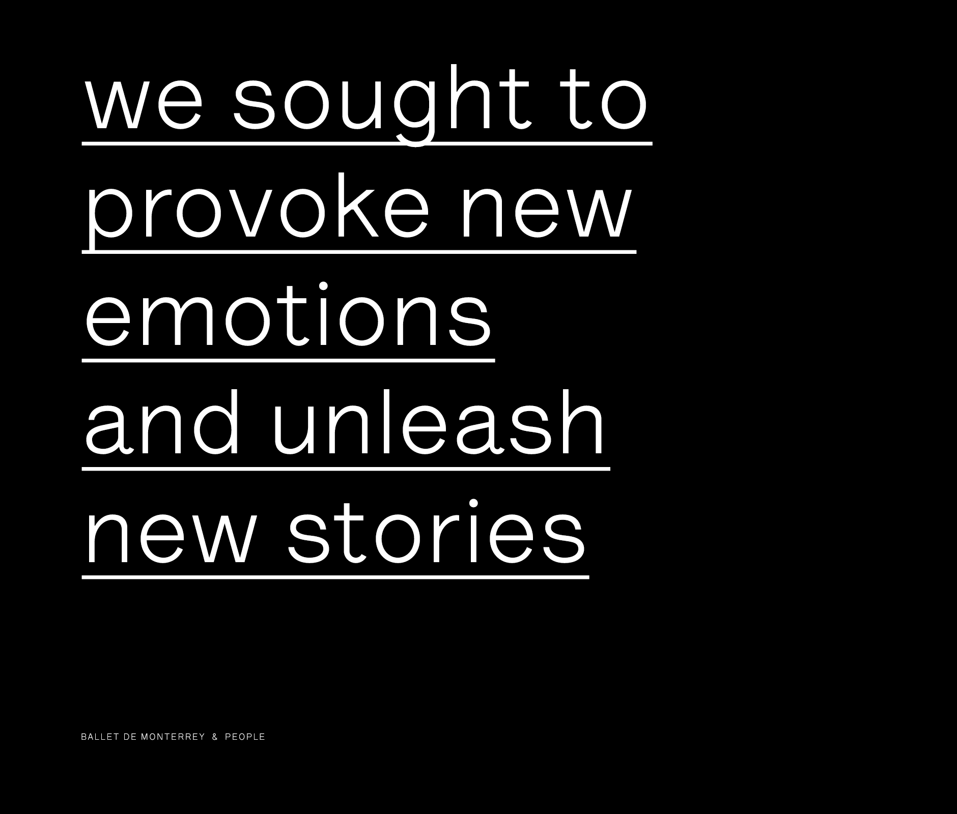 Actualizamos la identidad de la marca, creando una nueva estrategia de comunicación bajo el concepto de “Ballet Sin Límites.” Sacamos al Ballet de Monterrey de los confines del escenario e inyectamos una nueva perspectiva a la estética tradicional que ha definido a este arte.