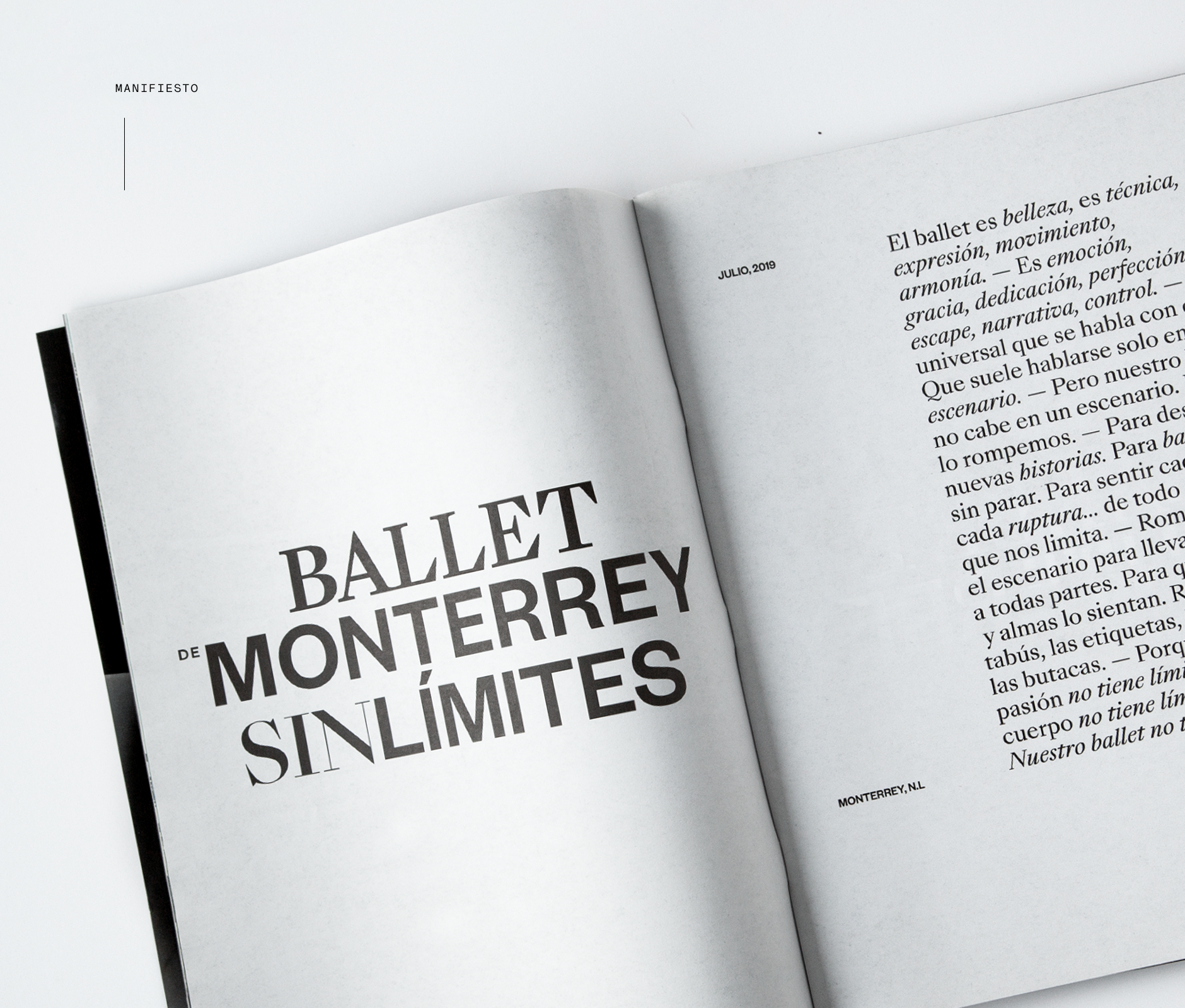 We updated the brand identity, creating a new communication system under the concept of "Ballet Without Limits." We took the Monterrey Ballet away from the confines of the stage and instilled a new perspective into the traditional aesthetic that has defined this art.